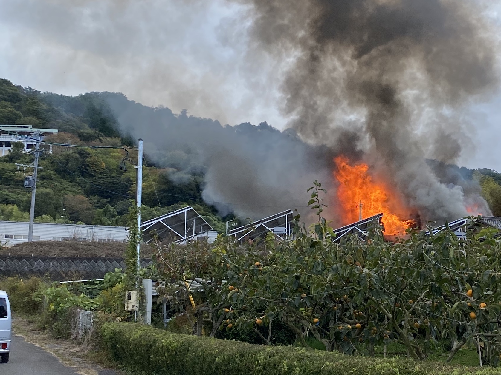 厳密には間に畑や倉庫、ソーラーパネルがあるのですが、隣りっちゃあ〜隣りです!! あっという間に全焼・・・・ 幸い、人は居なかったようですが、ホント怖いです!!