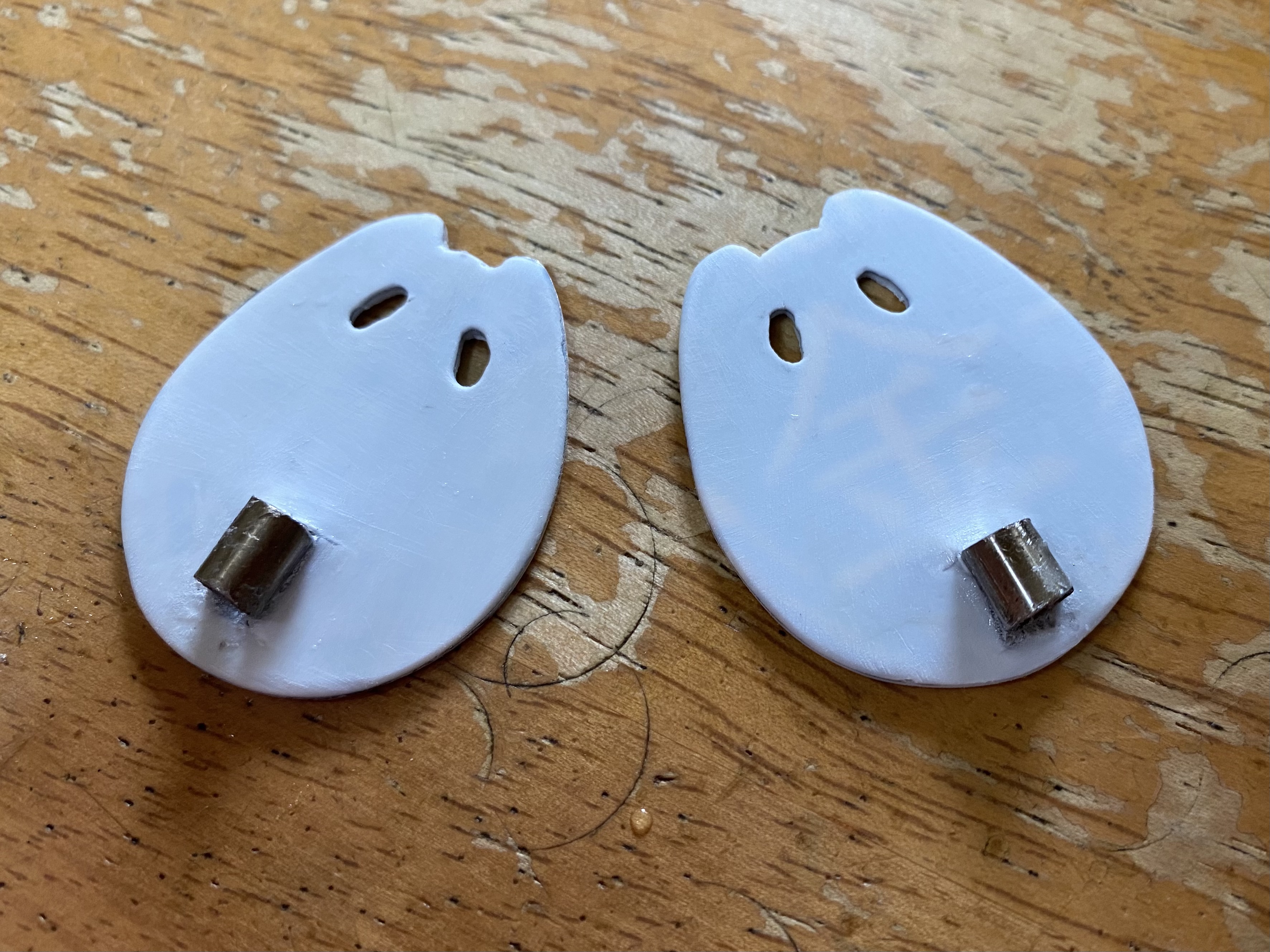 諏訪流の鈴板は、伝統的には鯉の「鰓蓋/えらぶた」を加工した物です。 ですが普段、私はプラ板を加工した鈴板を使っています。 発信機はバックパックに付けていますが、鈴板に関しても発信機を付けられる物を使っています。 もともと波多野鷹匠がプラ板の鈴板に発信機を付けることを始めから、協会の会員や、うちの商品をもとにいろいろな形で改良されました。