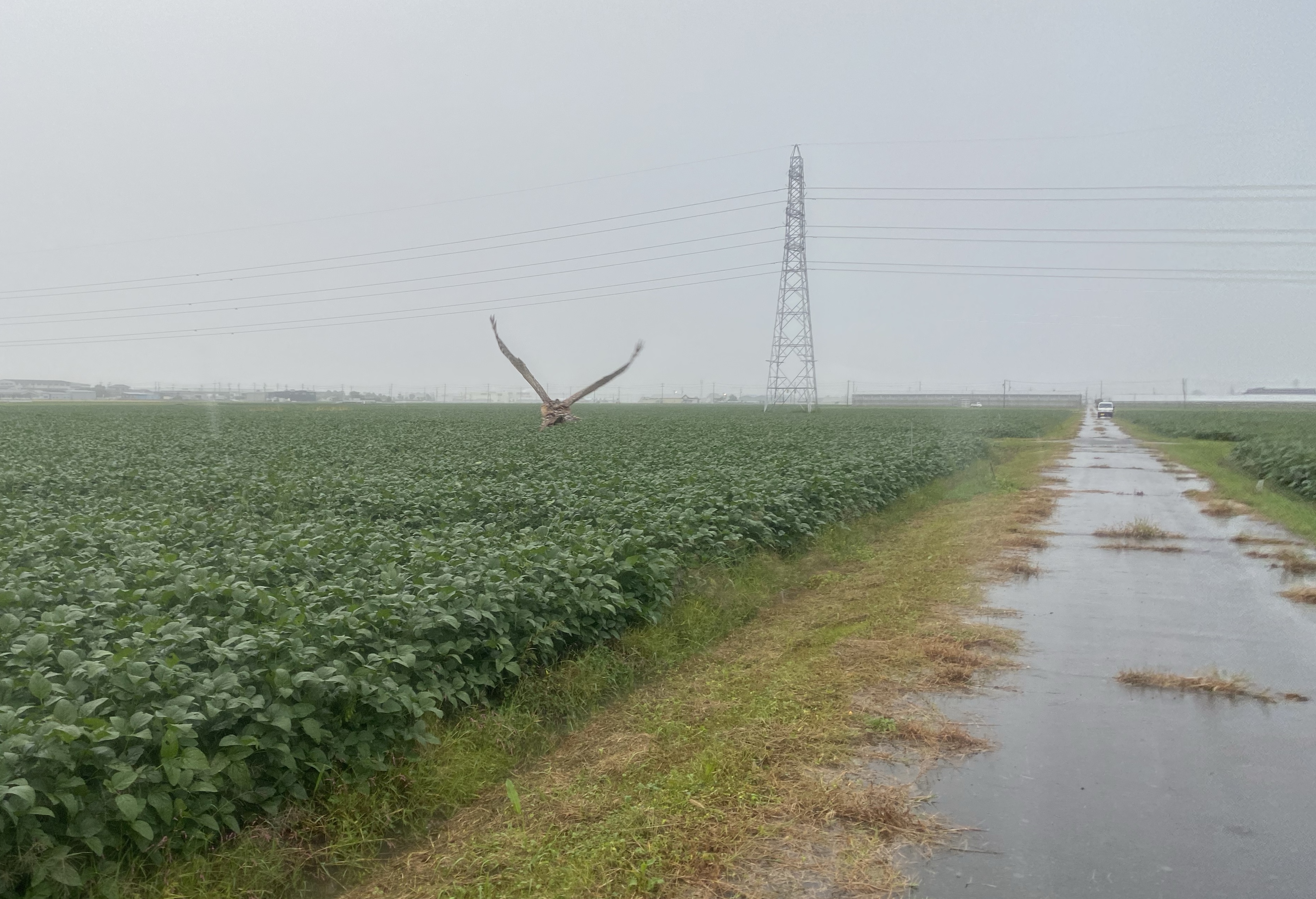 やっぱり飛ばす 台風の進路がそれぎみなので、風はほぼなく、雨も土砂降りと言うほどではない。なんとかなりそうと、結局は飛ばしに出る!!雨も本降りのままですが、私もびしょ濡れになりながら、飛ばす!羽根が濡れてきて、いつもの半分位ですがまあ・・・
