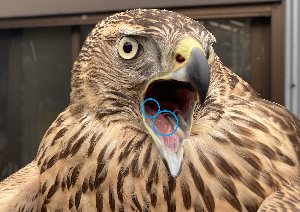 丸ハシ仕込みを軽視していたわけではないのですが、今までのオオタカの経験から「なんとかなるわ!」と考えて、サボってきました。 ですが、ルアーを獲らせた後、近くの物陰へ持ち込もうと、いつまでも付いている餌に嘴を下げず、すったもんだ・・・が、酷く・・・・ 直んないんじゃね!?・・・と、それが二日前に書いた「問題行動」です。 ・・・で、10日程前から丸ハシ仕込みを行ったしだいで・・・・ 1度目は、鳩を掴んだ後、20分ほどの間、何度も持ち出そうと試みて、大暴れ! やっと、食べ始めて据上げしたのですが、その時に素嚢周辺を食べてしまいました。 次の日に2度目を、もう持ち出そうとはせず・・・ その後は、固定していない軽いルアーでもその場で嘴を下げるように・・・