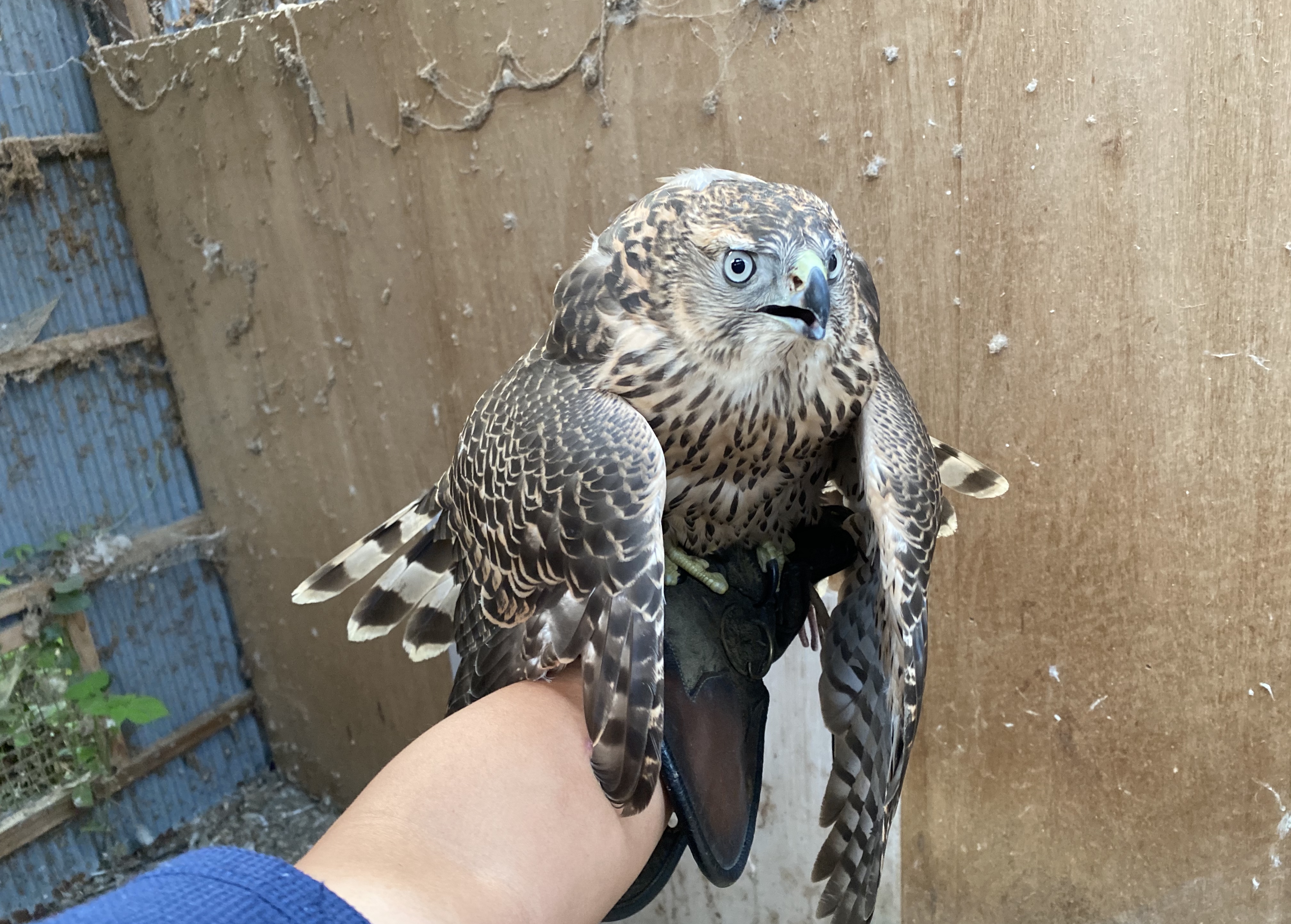 仕込んでいるオオタカ フィニッシュ 弟も、なにもないと「ピャーッ、ピャーッ!」鳴きまくりです。 ですが、アオサギやらカラスやらを見つけると、見込んで黙ります! 緊張して黙るわけです!