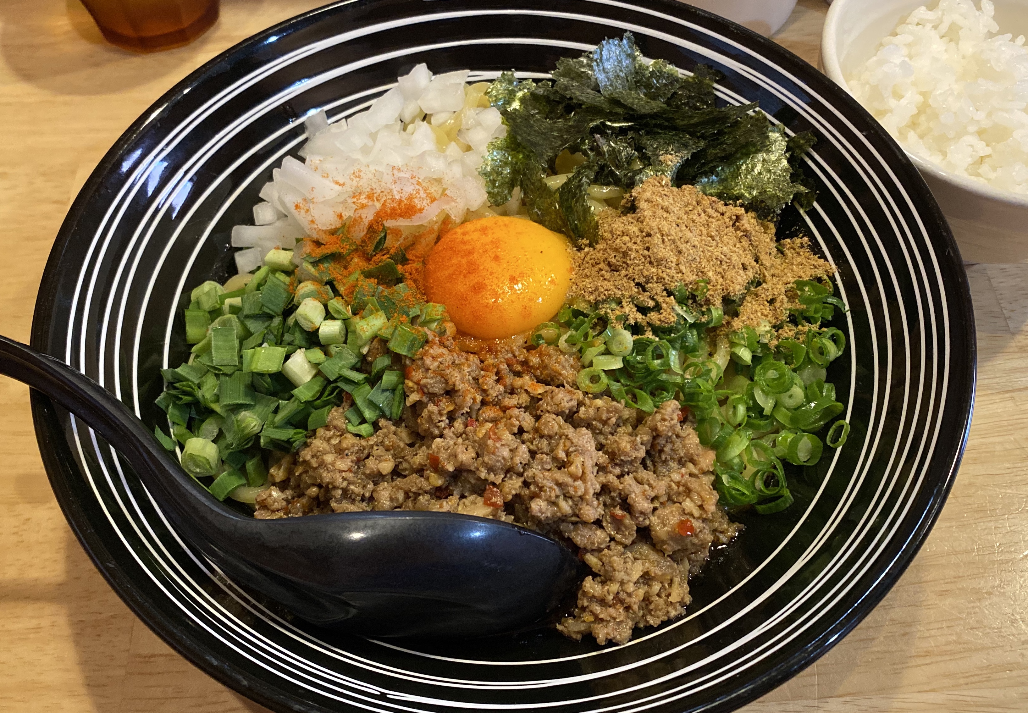 しいれで 出ました!!雨予定かと思いきや、猛暑!!生きたウズラは危ないかも!?途中、土砂降りからの曇りでやわらぎましたが、この暑さは・・・ちなみにお昼は「葵◯堂」にて「台湾油そば」をおいしくいただき!!ランチサービスの小ライス+でお腹も満腹!!「油そば」も気になるし、また・・・・