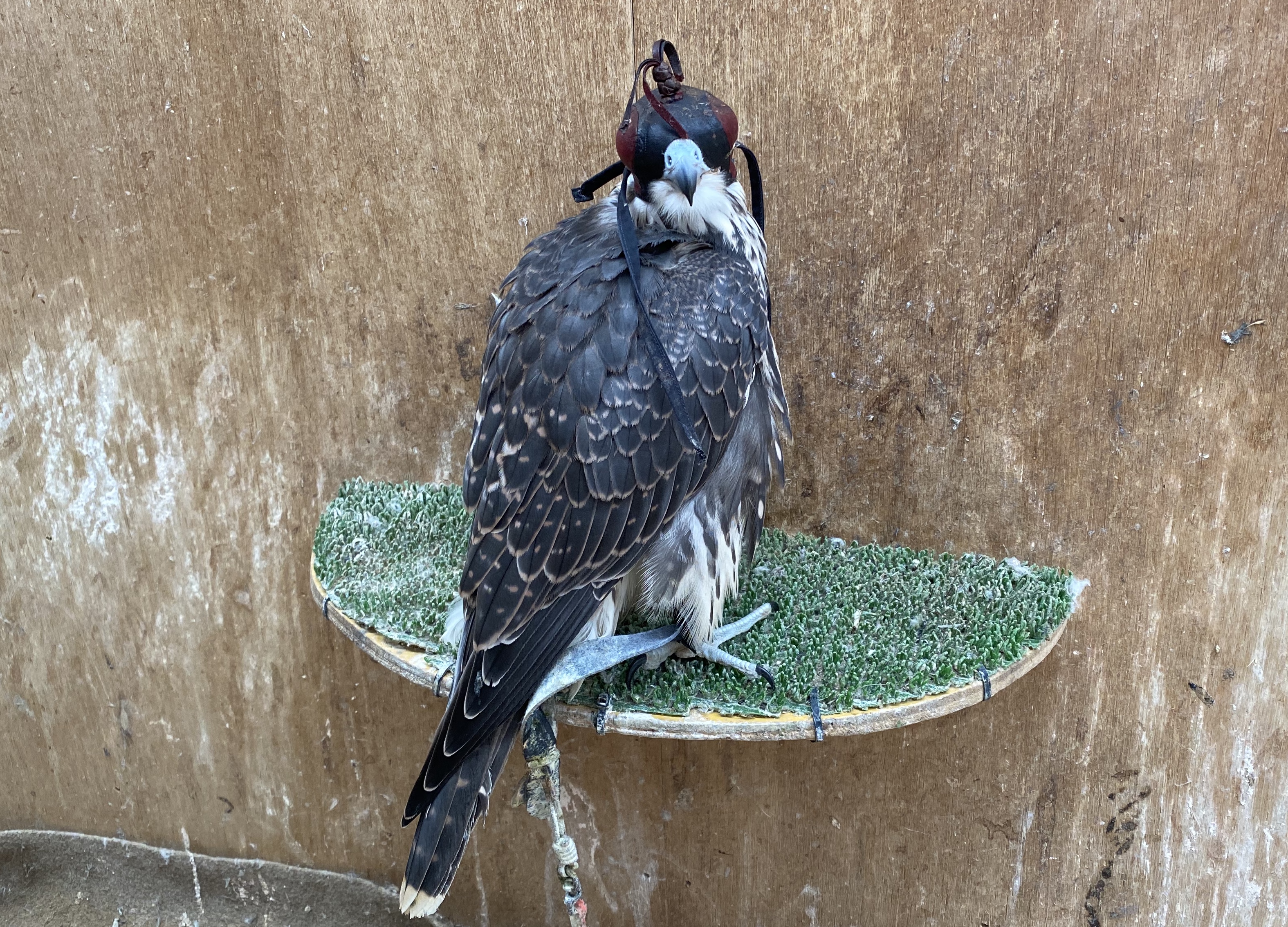 鷹を知っている方はわかるのは当然なんですが、この2羽はペアレントレアード個体です。 ですので、人の手で育てたハンドレアード個体(インプリントと言われる個体)とは違い、エサやりなどで人の顔は見てはいますが、基本的に同種である両親を見て育っていますので、人に慣れていません。 言わば野生の鳥を捕まえてきたものに近いのです。 ですので、最初のアプローチは結構なハードルです。 花見先生の話では、オオタカでは喰いつかずに死んでしまった個体もいたようです。 まぁ、ハヤブサですから基本オオタカよりずっと慣れやすいです。 いわゆる夜据からではなく、明るい中での喰いつかせでも、普通に慎重にアプローチすれば、上手く慣らせます。