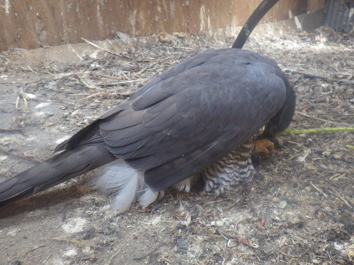 現在、うちには3羽のアメリカオオタカがいますが、オスが1羽にメスが2羽。 しかし今のところオスは人工受精には、使えそうにない! ありがたいことに、メスは2羽とも受け入れから、産卵に使えました。 ただ大きい方は繋いでいる状態では良かったのですが、小屋に放すと発情せず・・・ 繋ぎ直すことになったんですが、昨年は産むに至らず・・・ 果して今年は・・・