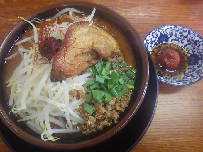 休みですが・・・ 仕入れを兼ねて「ラー○ン・つけ○ 爆王」にて「しびれベトコン味噌でカレー」を「誤爆玉」+で・・・・美味しいですが、もっとカレーが主張していて欲しかった!!夕方、合間を見てオオタカを・・・・