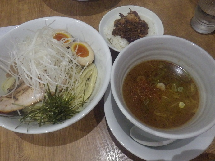 誤算と言えば、〇和の各務原分店に春限定のつけ麺を食べに行ったんですが、まさかの休業・・・・ まぁ、まわりに良い店がいくつかあるので「自家製〇 よなや」で「ねぎ塩つけめん+チャーシュー丼(小)」を・・・