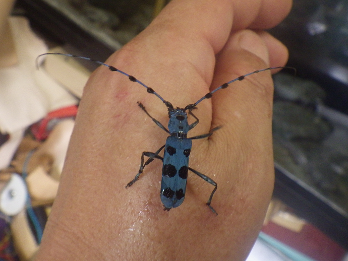 ルリボシカミキリ かみさんの母ちゃんが「なにこの虫!?」かみさんが最近居る・・・と!私は初めて見ました!!(たぶん)昨日のことです!!