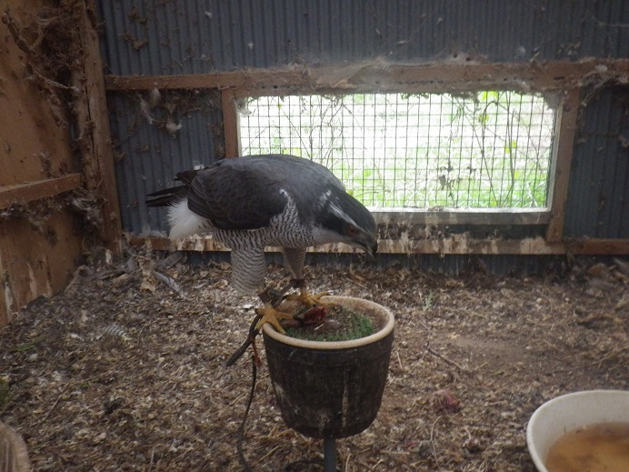 そんなこんなで、フィニッシュ メスは受け入れ態勢…この子は池上鷹匠補がいじっていたやつ・・・でもなぜか触れるのはかみさん・・・ アメリカオオタカ メスの大きい方も受け入れ態勢・・・これもかみさんのでかみさん・・・