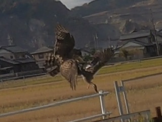 良いんだけどね オオタカ “ フィニッシュ “ 弟ですが獲物を見つけて据え出すとだいぶ鳴かなくなり、「鳥筋/とすじ」に羽合せれれば、「生追い/なまおい」はほぼなくなってきました。良くなってきたんではあるのですが、良いとこに獲物が居ない、また私が悪いせいで、そもそも良いシチェーションに持ち込めず結果が出ない。う〜んです。ここで言う「良いとこ」は、若鷹に経験させるのに良い場所。