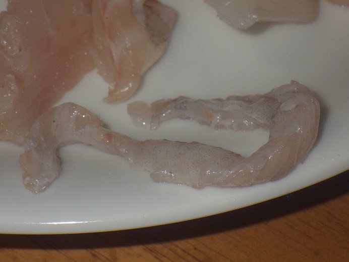 写真は昨日のグレのひれの付け根・・・縁側っうことかな!?・・・これは美味いです!!