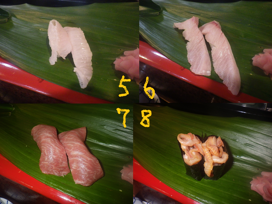 くいだおれ・・・2 まずはなくなりそうな獲物から・・・※親族間の見苦しい奪い合いの場となります!!(笑お刺身はとろとしまあじの腹身(とろと言うほど脂はなくさっぱり濃く旨)これらは2切程頂いたら、かみさんと子供達に・・・続いてひらめの縁側・・・これはすぐになくなるネタです。私の縁側コールにかみさんも追随・・・で、縁側は山。・・・と食べ進める!!※ひらめのえんがわ、ぶりとろ、とろ、赤貝ひも軍艦