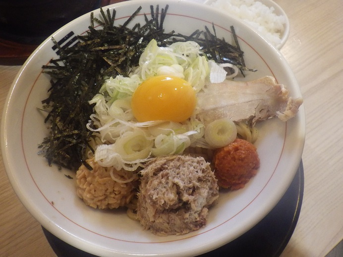 山〇無双 城〇烈火・・・2 私が食べたのはこれ・・・「烈火ひっぱり混ぜそば」なかなかの「キワモノ」ですが・・・なかなか美味いです!