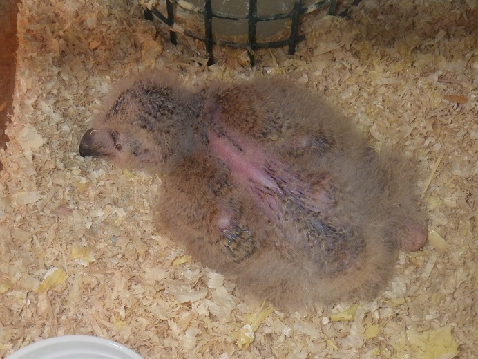 22日に時期的にそろそろと言うことと、台風の影響が出ても困ると言うことで、ベンガルワシミミズクのヒナを取りだすことにした。 しかし、巣から出ているメス親を見て「?」と思って巣を覗くとヒナが居ない! 薄汚れた卵だけが4個(このベンガルワシミミズクは通常4個たま〜に5個)・・・冷たくなっていた!!