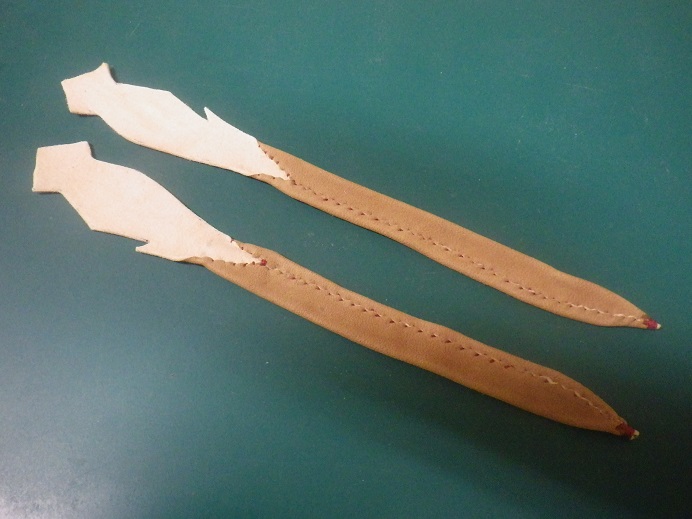 ・・・なのか、道具の注文がちょくちょく入ります。 それも和式の道具が多く、足革や忍縄、鈴板など・・・ 私の制作する和式の足革は日本放鷹協会に入会した時にT氏に頂いた資料を基に少し手持ちを細めにしたものです。 原型は原型であるのですが、足と反対にあたる端が重くなると枝などに巻き付くリスクが高くなると考えられるため少しでも軽く・・・と考えて細くしています。 まぁ、アイルメリィ方式の方がリスクは少ないはずですが、どうしても和式の形状にこだわる方もみえるため・・・ またアイルメリィ方式でもミュウジェスからフライングジェスに交換することを怠ればリスクは回避できませんし、アイルメリィ方式を使う意味もありません。