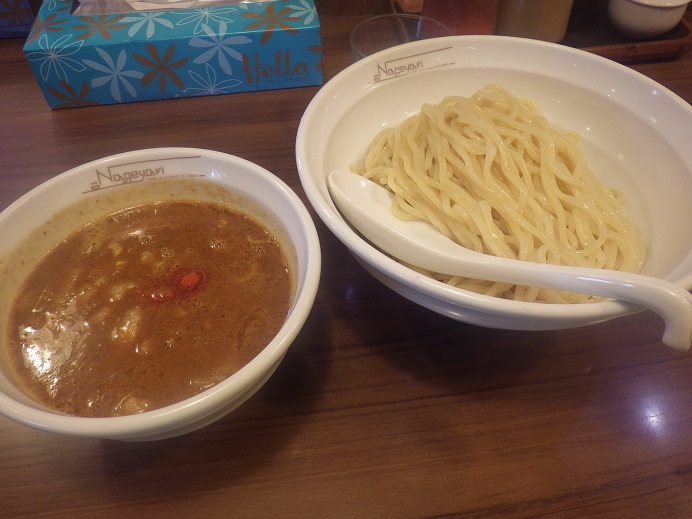 I会員が来店、アイルメリィキットの話をして・・・ その後はI会員と昼食に出る・・・「またラーメンだ!!」 もちろん望んで行くのだが、私は・・・三日連続・・・ で、木曜日に店前まで行って諦めた「ラーメン イ○ドリ」へ・・・ 駐車場が止められなければ、豚骨ラーメンのこちらも初訪問店へ行く予定でしたが、店前駐車場のど真ん中が空いていましたので、素早く駐車。 店内に入っても、待ち時間がほぼない状態で座れました。 まぁ、タイミングが良かったようで、その後は並んでましたが・・・ ここは家族連れが多く、入りやすい店舗のようで、良い感じでした。 「特製つけ麺」を頂いたんですが、味は〇・・・ スープは我○豚風でよりあっさりな感じ、鶏チャーシューはしっとり美味美味! ただ、麺がぬるく、〆が甘い感じ、さらにぬめりも・・・ 味玉はほぼ「ゆで」な感じ・・・