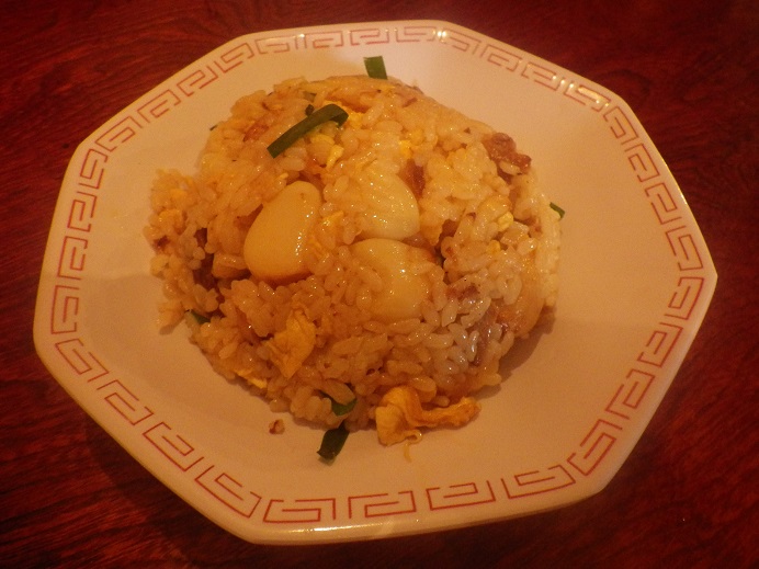 昼は焼○ラーメン三條にて・・・ 焼○ラーメン 大辛と辛チャン(写真)を・・・ このお店は看板商品の「焼○ラーメン」も美味しいんですが、チャーハンが美味い!! この辛チャンは辛くはなく、大量のニンニクを楽しむチャーハンです!