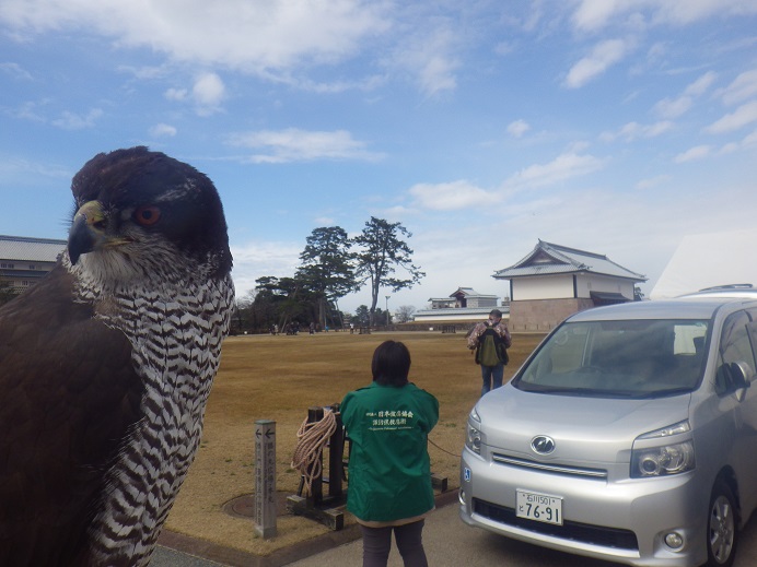 金沢城実演リハーサル・・・さて 金沢城の三の丸広場での実演なのですが、今年は工事の関係で、当日はともかくリハーサル時は封鎖出来る時間が限られ・・・オオタカとGBは早めのリハで乗り切らねばならず・・・