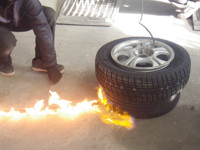 タイヤの交換 先日買ったスタッドレスタイヤと河童6号機から外したツルツルタイヤ&ホイールを持って、佐藤会員の作業場へ・・・忙しい合間を縫って交換をしてもらいました。その後は買い物ついでに輸送箱を一個・・・お客さんところへ・・・ちょうどフェラーリF50が到着すると言うことで、待つことに・・・