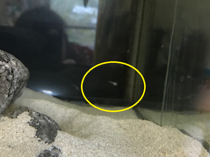 もう孵ってるし・・・ 昨日2℃ほど水温は上げたんですが、卵の色の変化はない様子・・・・・・・・と浮遊するゴミ!?エサやっていないんでそうそうゴミは・・・いや、稚魚でした!!2日で孵化???まぁ、小さい!!エサ困りそう・・・・今日は朝から強風で・・・ラナーズは飛ばしましたが、今年の子は心臓に悪かった!!