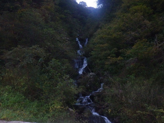 日本の酷道、北陸側の景色 ・・・としては、見どころの滝!!福井県側は恐怖を感じるような道ではなく・・・残念なのは、夕方・・・暗くなってしまい景色はあまり楽しめませんでした。途中の分岐で別の町へ降りると言うか山越えするルートもあるようなので次回はそちらへ・・・・