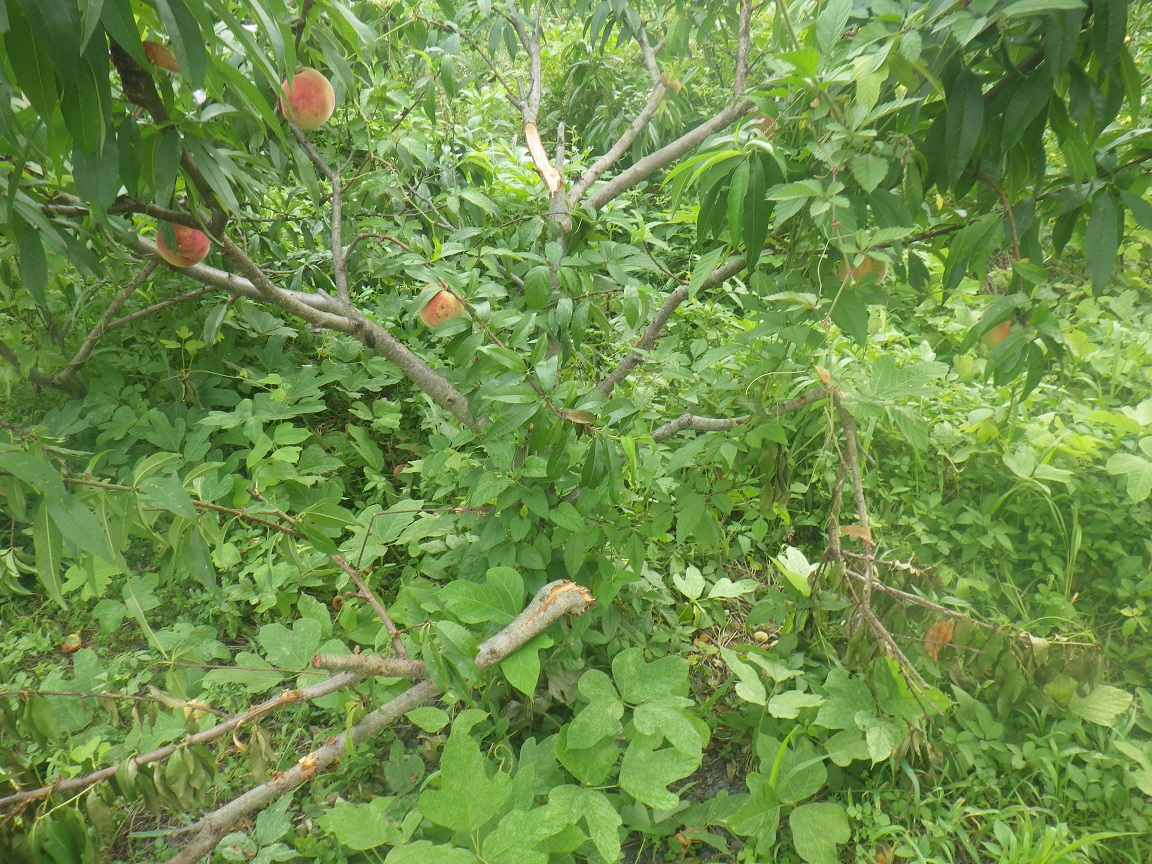 イノシシかクマ? 楽しみにしていた桃の木の枝が数本折られている。直径1〜4cmほどのものまで・・・・波多野鷹匠、熊撃ちの経験があるお客さん、隣の親父さん・・・結論は出ませんが・・・この2種が濃厚!!ちなみに隣の谷で60代男性がイノシシに殺される事件が5年ほど前に起きているとか・・・「全然、知らなかった!!」