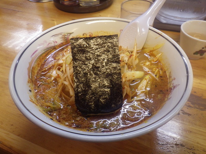 花見先生の墓参りに・・・予定を終わらせ帰りの夕食 中央道に乗る前に腹ごしらえで、振られ続けた「ハ○ピンラーメン本店」にて・・・私は辛めの「ピリカラハ○ピン」を・・・昔ながらのラーメンを・・・ずるる・・・「う〜ん、潔し!!」