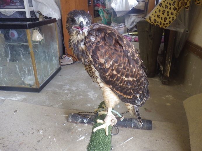 この子かなぁ!? ヨーロッパオオタカのオスのヒナですが、店に残す子です!人工授精用の後釜・・・と言うことになりますか!?ロシアの雄&雌はけっこうな年なので、後釜作りは案外急務!!なかなか難しいんですが・・・・