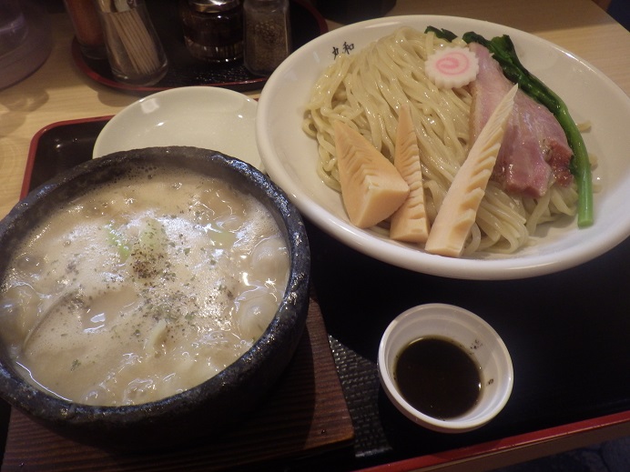 仕入れの関係で出ました。 そんでもって、今後の相談もしてきました。 その行きがけに「つけ麺 ○和 各○原分店」で「クラムチャウダー風つけ麺」を頂いてきました。 2015春限定で頂いたのですが、かなり好みで・・・それがまた今期も限定で登場!! 昼夜各10食限定ですが、入店時のほとんどのお客さんが頼んでいました。