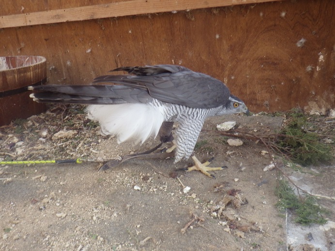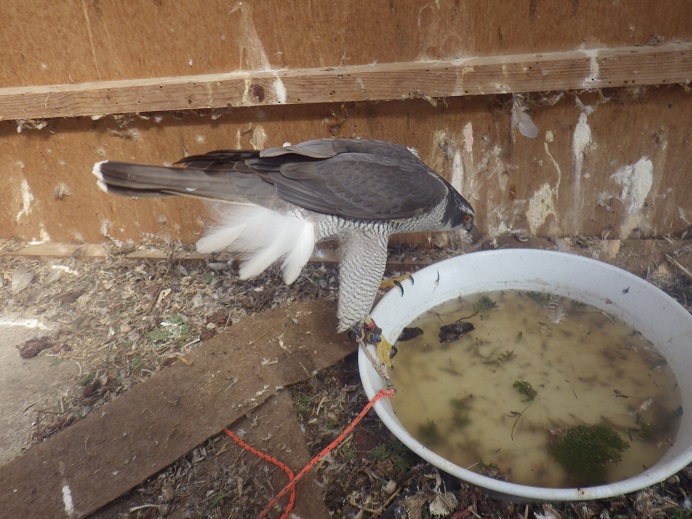 朝から気を揉む! オオタカ(ロシア産・ハンドレアード個体・♀)が卵を産みそう・・・と言うか、ワタシの中に卵があるのは、触診で確認できる。一昨日は殻がない感じですが卵っぽいのがわかり、昨日は殻が確認できるくらい、今日は総排泄孔に近づいているような・・・精子の注入のタイミングもあるので、気を揉みます!!現在、16:00明日っぽいなぁ!?