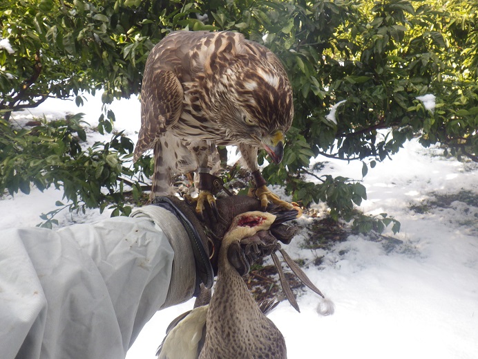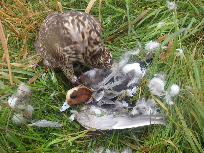 何度か当てられたものの、絡んだものの、掴んだものの・・・結果がない! どうも最近、足が痛いのか、なにかツボを外しているのか、獲りきれないことが・・・ 挙句に今日は、カルガモに絡んで対岸に当たって泣き別れ・・・しかし、カルガモはブッシュにひっ掛かり仰向け状態でバタバタ、すぐに水面には落ちられず。 飛苦無はそこへ飛び掛かろうとするが、ブッシュの反対側なので、下側から回ろうとしたら、水面に落ち、さらにそこにカルガモが転げ落ち、飛苦無の頭に乗っかる始末・・・頭の上なので、足は下ですので、なんかやっていたけど、掴めるはずもなく・・・水浸し!!