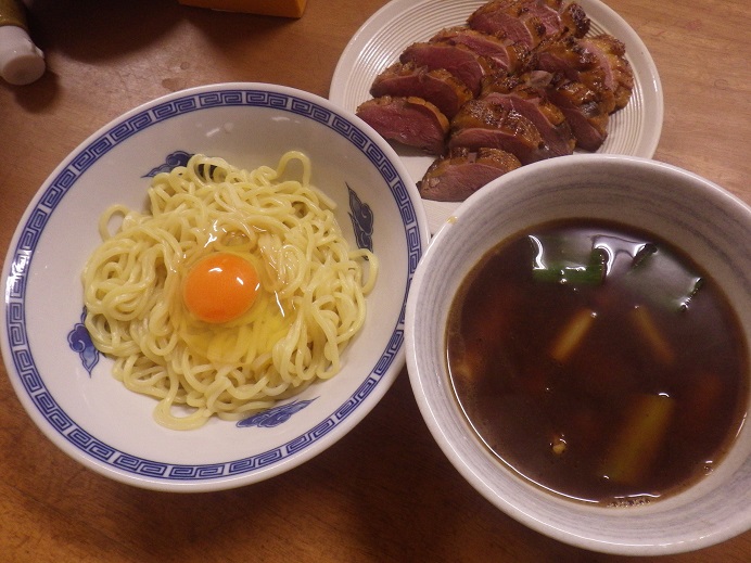 釜玉カルガモつけ麺+肉マシ 喰ってないけど・・・美味いらしい!!夜には明日の東海合戦ワールドに向けて池上鷹匠補と河村(新)会員が来店!!