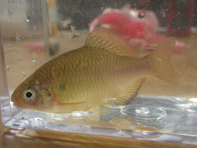 一か所目では、婚姻色の出始めた大きめのカネヒラ、他にシロヒレタビラ、アブラボテ、ヤリタナゴを・・・ 二か所目では、アブラボテ、ヤリタナゴ、タイリクバラタナゴを・・・ 三か所目では、大きめのアブラボテ(写真の個体)から小さめまで・・・