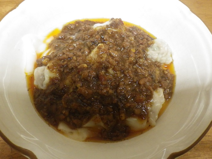 ワンタン赤油ソースがけ