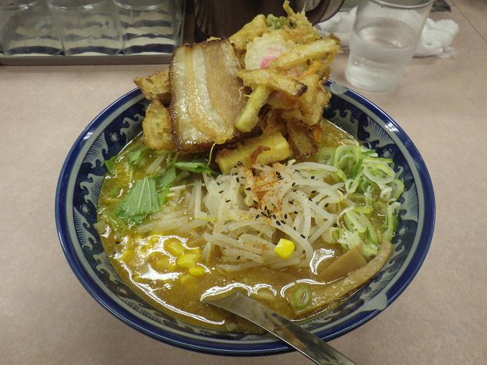 かき揚げ味噌ラーメン 私、昨日からの池上鷹匠補、佐藤会員、それとうちのかみさんが午前6時〜10時までの間、足革取付け(池上鷹匠補)や駆け足で鷹達の訓練を・・・総会へ向かう為、池上鷹匠補、佐藤会員、衣笠会員とで名古屋へ・・・途中、森部理事と合流し「こだわり麺○房 たご」で「かき揚げ味噌ラーメン」を頂きました。