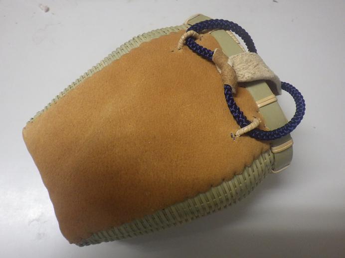 ひさびさに注文が入りましたので、裏張りと根付の取付けを・・・ うちの現在の口餌籠は宮内省時代の大きいサイズを模して作っています。バンが1羽入るくらいのやつです。