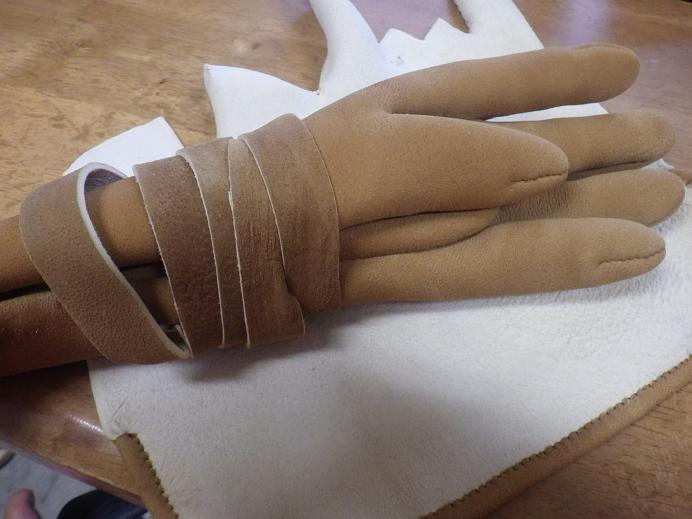 「鞢/エガケ」作り ここ最近、「鞢/エガケ」作りを行っている。目標は4枚ですが、現在2枚目・・・はじめるとがんばれるのですが、作り始めるまでがおっくうです。この「鞢」も鷹匠によって作り方が違う。諏訪流内では違ってはいけないんです(違っても良いのかなぁ・・・と最近は思うことも)が、それでも違う。縫い合わせる部分や閂止め、緒の切り方など・・・良い見本が無いと、上手くもなれないし・・・案外、考えさせられます。