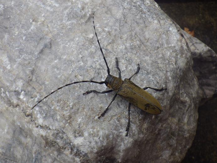 暑い一日 本格的な夏っぽい!?写真はタラの木につくセンノカミキリ。けっこう居る!食害はひどいらしい・・・