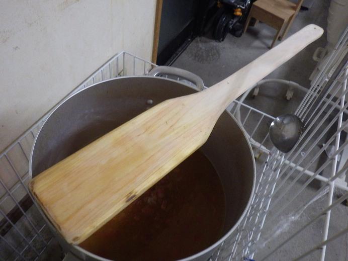 ・・・で、本日続きで煮続けるも、朝の段階で木べらが折れた。100円均で買った安物ですが、何年も使っていたので、結構ショック! すぐに「100円均で・・・」と探すも売っていない。 さらに「多少高くても・・・」とホームセンター(あまり大きくない店舗)で探すも、売っていない。 かみさんに探させるにしても、無かったら困るので、とりあえずヒノキの板を購入し、さっさと作りました。 まぁ、なんとか使えそう。 案の定、かみさんが探しても見つからず・・・・