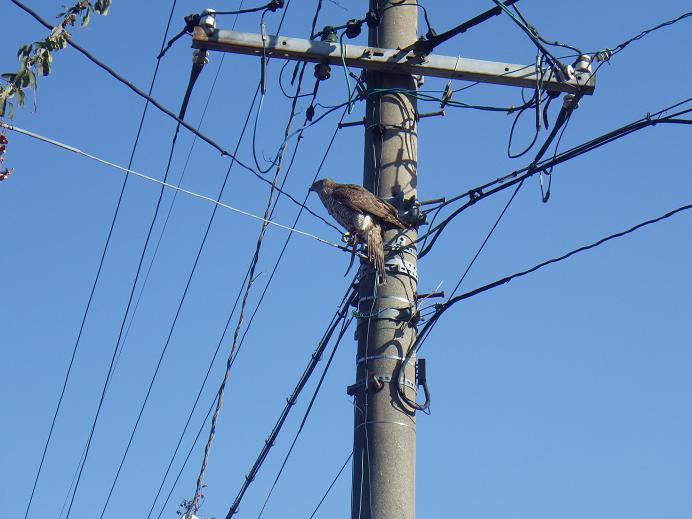 撮影 大阪の放送局の番組へ出演することになり、本日撮影がありました。一日で結構な撮影をこなすことに・・・「東雲/しののめ」と「飛礫/つぶて」、かみさんの「蒼海/おほみ」にはがんばってもらいました。特に飛礫は上げるつもりが下がってしまった肉色だったので、鳥自身は大変だったと思います。一日手伝ってくれた池上鷹匠補やM会員、子供達の面倒をみてくれていた義妹に感謝です。ちなみに写真は昨晩です。