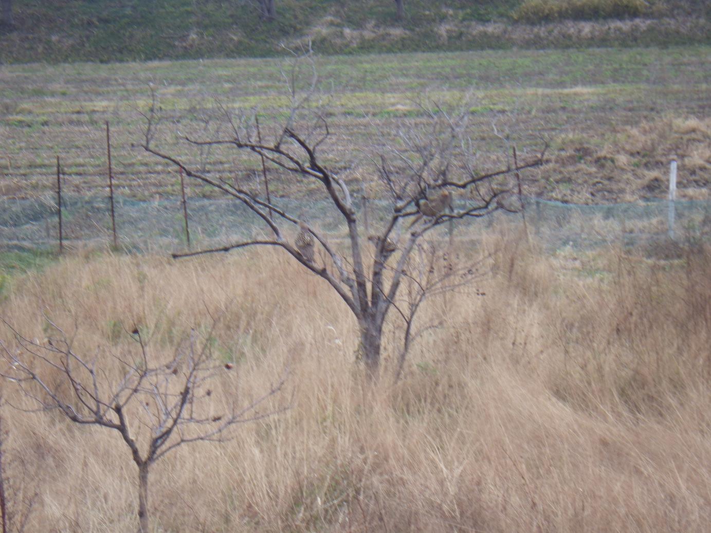 キジのなる木 通りに面した民家の裏の空き地だし、周りにオスが居る感じはなく、見てるだけ!!写真は草原の中の木に見えますね!?昨日と違い、カルガモ、コガモ、ヒドリガモはまぁまぁ居ます。・・・が、獲り損ね多し!