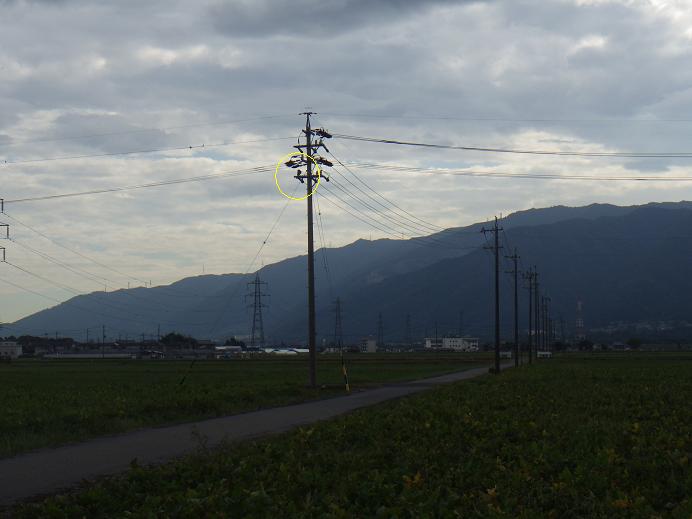 なにかあるかもしれないからのハトでしたが、まったく問題なく・・・ただ、まだ稲刈りの作業中&済んでいない所も多いので、落ち着いて飛ばせる場所はいつもの鉄塔くらいです。 ですが、敷地内では箱太郎、店&繁殖小屋等の建物の上しか止まらず・・・ 最初からで、狩場では木に止まります(ある程度すいている、枝が判り易い木には・・・)。 おそらく葛などのツタ植物が覆いかぶさって、止まれない&泊まり難いと判断しているのではないかと・・・