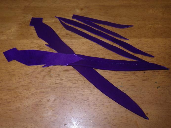 足革 春に注文を受けていた和式の足革を作り始める。※紫革の指定ですが現在の仕入先にはなく、探していた結果、遅くなった訳ですが・・・・・・と言っても、先日の革の入荷の日からなんですが・・・これは、先輩鷹匠に型を頂き、作っているものですが、トラブル回避の為、少し細くしています。合間合間に作るので、やっと1セット!