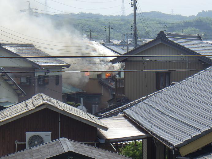 異様な煙 堤防を店に戻る途中で・・・白煙が立ち昇る・・・しかし、そこは住宅密集地で、なにかを燃やすような場所ではない。気になったので、ゆっくり走っていると・・・やはり!?近所の人達は集まっていましたが、消防車はまだ・・・サイレンも聞こえません。心配ですが、なにかを出来るわけでもなく、交通の妨げになるのも良くないので・・・