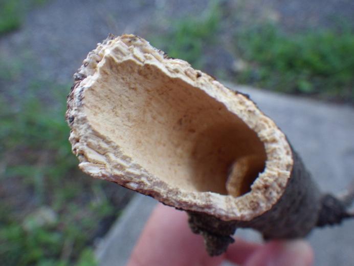 くまんばち クヌギの木に手を掛けると、明らかに枯れている部分。なんとなくへし折ると・・・中にはくまんばち(クマバチ)が・・・綺麗にくり抜かれています。