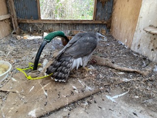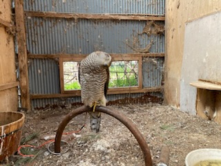 みらいちゃん おかえり?小屋に離しても落ち着かず、小屋前に人が立つとドタバタ飛び回るので繋いだら…途端にストンと落ち着きました。