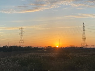 朝焼け 日が昇るのが遅くなってきて移動中に朝日が
