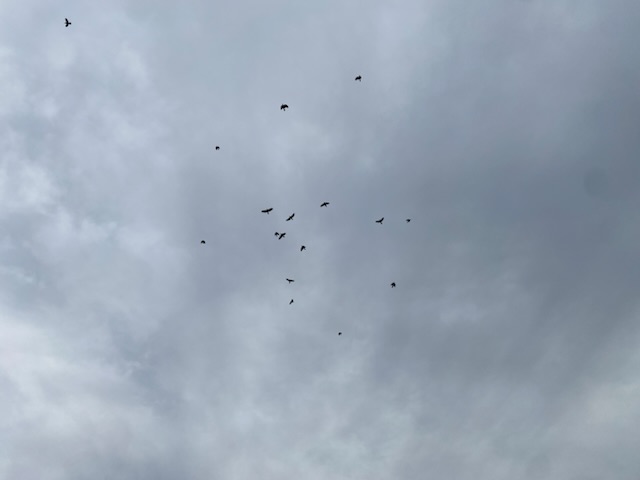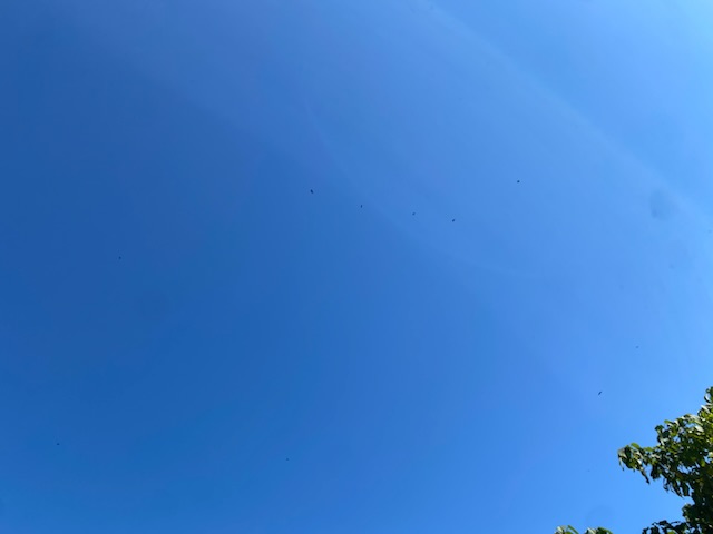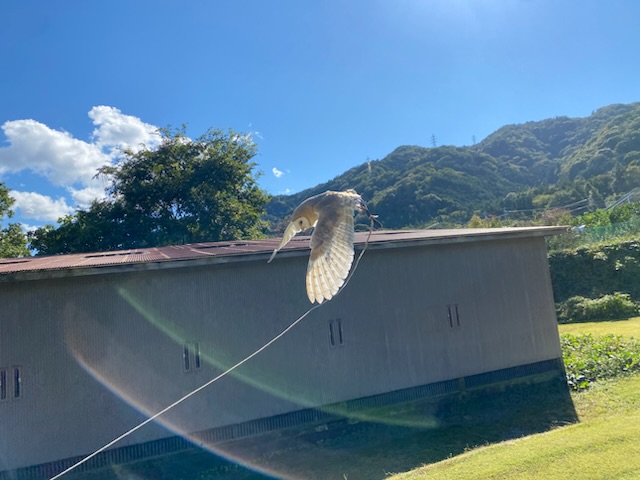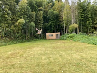 神影 奥のプレハブの上に向かっています本当はもっと高い位置へ行って欲しいのですが