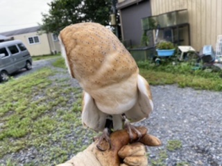 きらっきら つぶらな瞳...顔でかっ翼を広げた時とのギャップが...相変わらずわたしの走るスピードと同じ速さで後ろを飛んできます...