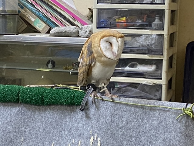 据え回し メンフクロウさん据え回し中まだまだ周りが気になります