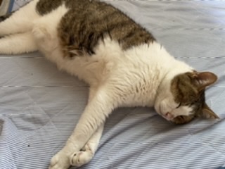 寝る ひんやりシーツに気がついたネコ。